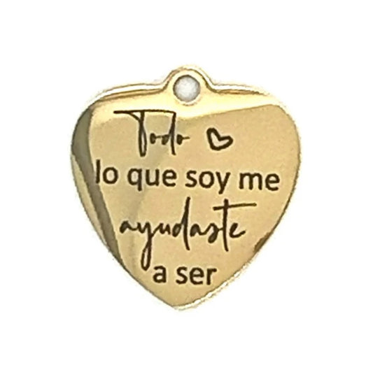 Spanish saying "Todo Lo Que Soy Me Ayudaste a Ser" Heart Charm Add-On