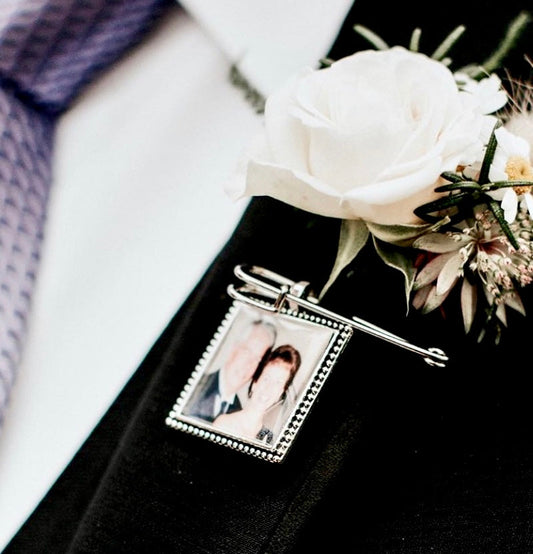 Sentimental Brides Wedding Day Gift in Memory Photo Charm & Pin