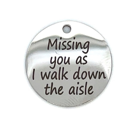 Round Saying Charm "Missing You as I Walk Down the Aisle"
