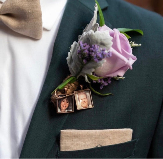 Gift for Groom Boutonniere Memorial Wedding Photo Charm Keepsake